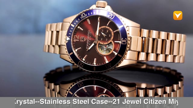 Carrero Limited Edition Catania Diver Automatic Heartbeat Rose Gold Maroon Dial Blue Bezel. Price: