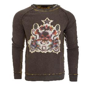 | Comfort and fashion meet in this Raw 7 sweatshirt in brown with yellow stitching and crowned skull design. Raw7 make your mark! 100% cotton |