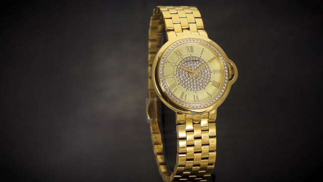 | Watch Details •Czet Crystalite Stones : All Hand-Set-160settings (100 on the dial and 60 on the bezel) •Movement: Swiss Ronda •Case Measurements: 38mm •Thickness: 10mm •Case Material: Gold Layered on Stainless Steel •Bezel: Stationary •Crystal: Scratch Resistant Harden Mineral •Dial Color: Champagne •Crown: Push Pull •Band: Gold Layered on Stainless Steel •Band Measurements: 7-7/8 inches L x 18mm W •Clasp: Deployment •Water Resistant: 5 ATM - 50 meters - 165 feet |