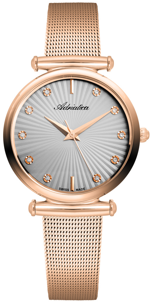 | Adriatica Women Crystal Index Rose Gold 34mm Grey Dial Swiss Made Stainless Steel Case Mineral Glass. Price: $259 | ||