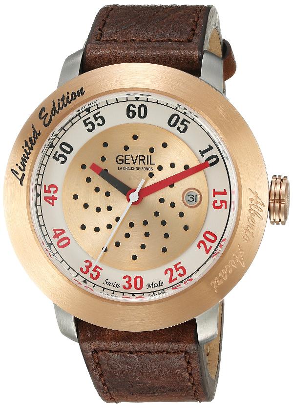 | Gevril Men's 'Alberto Ascari' Swiss Automatic Stainless Steel and Leather Casual Watch, Color:Brown (Model: 1101). Price: $695 | ||