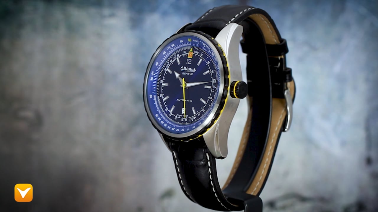 | Altanus Geneve Swiss Made 25 Jewel ETA 2824 Automatic Pilot Watch Blue Dial Black Leather Strap. | ||