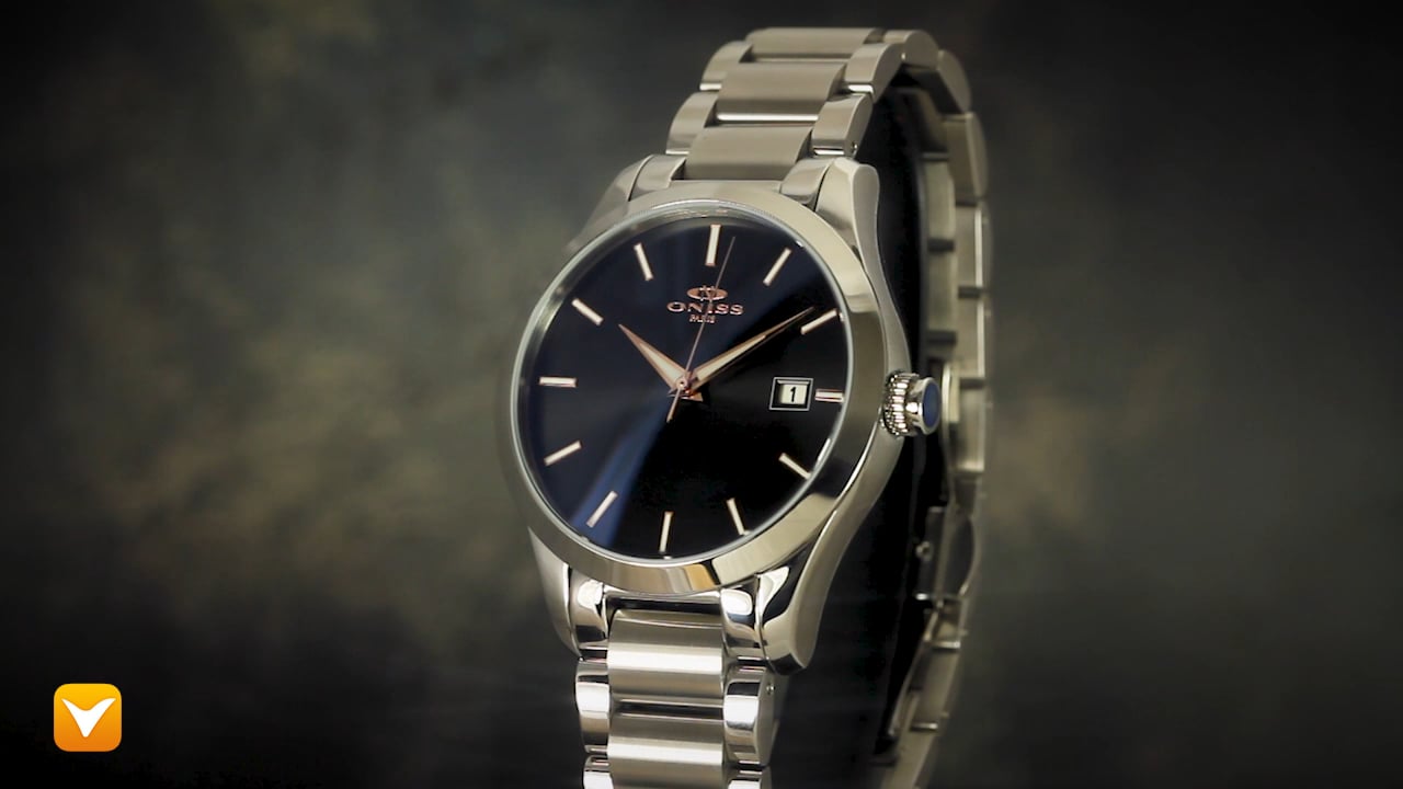 | Oniss Gent's 24 Jewel Automatic Date Stainless Steel Black Dial Rose Gold Markers. Price: $229 | ||