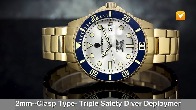 | Carrero Submersion Limited Edition Automatic Gold Tone White Dial Blue Ceramic Bezel. Price: $389 | ||