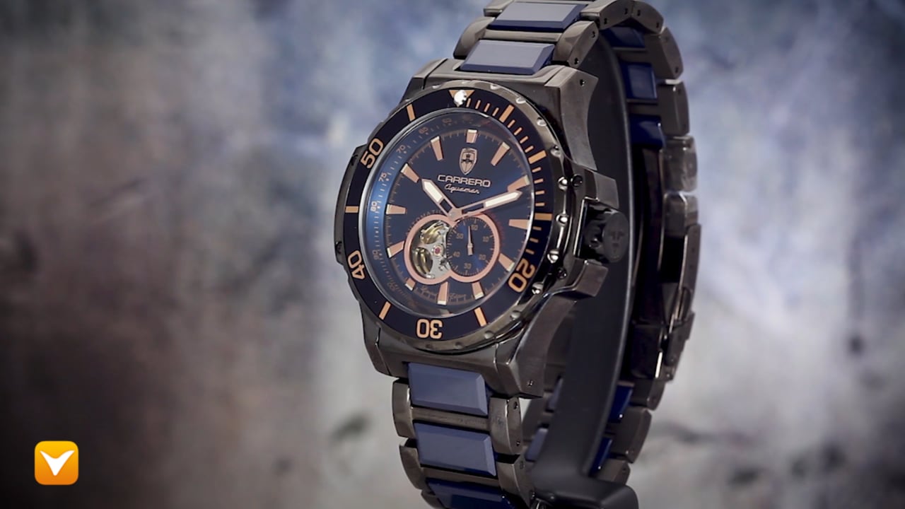 Carrero Limited Edition Aguamar Automatic Diver Blue IP Blue Ceramic Blue/Rose Gold Dial. Price: