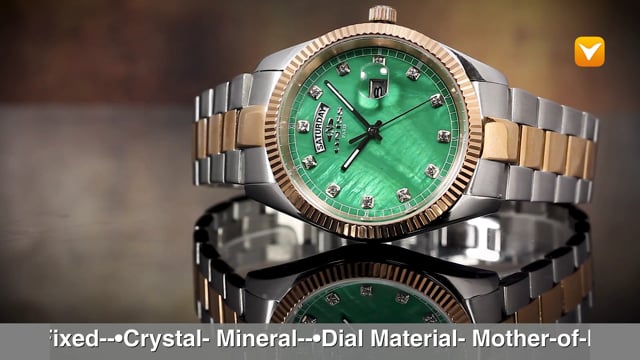 | Oniss RX Day Date Two-Tone Rose Gold Green MOP Dial Austrian Crystals. Price: $169 | ||
