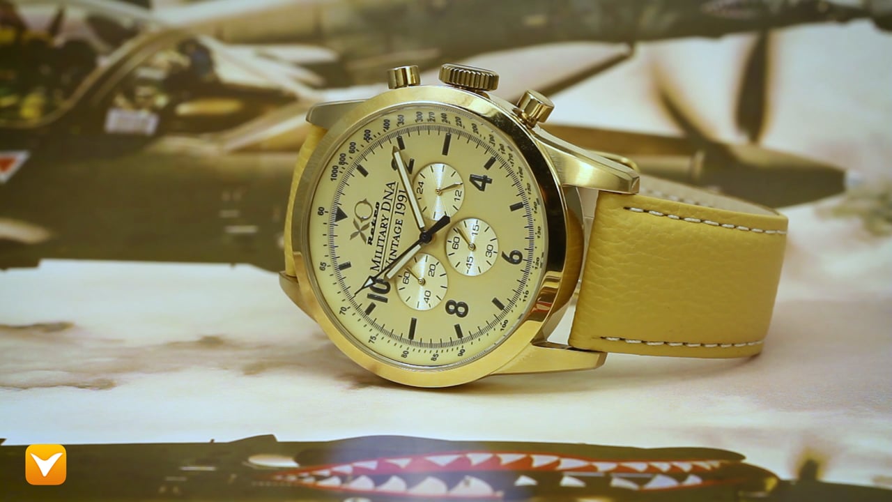 | XO Retro Men's Certified 1991 A-10 Warthog Fighter DNA - 45mm Yellow Gold Tone Dail Khaki Strap. Price: $179 | ||