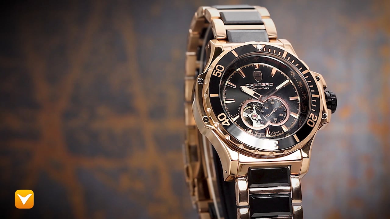 Carrero Limited Edition Aguamar Automatic Diver Rose Tone and Ceramic Black Dial Black Bezel. Price: