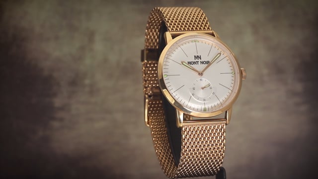 | Mont Noir Montana Slim Automatic Rose Tone Silver Dial Mesh Band. Price: $249 | ||