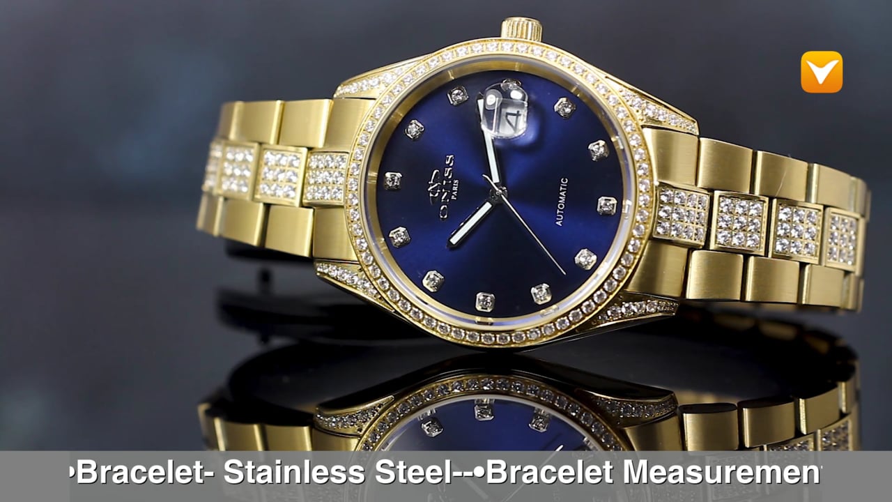 | Oniss Gent's RX 24 Jewel Automatic Gold Tone Blue Dial Austrian Crystals. Price: $299 | ||