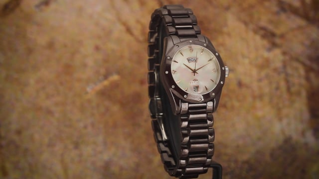 | Watch Details 15 genuine Diamonds Movement: Swiss Quartz Case Measurements: 37mm Thickness: 10mm Case Material: Ceramic Bezel: Fixed Crystal: Sapphire Dial Material: Mother-of-Pearl Crown: Push Pull Complications: 6:00 - Date Window and 12:00 - Day of the Week Bracelet: Ceramic Bracelet Measurements: 6-5 inches L x 18 mm W Clasp: Push Button Deployment Water Resistance: 5 ATM - 50 meters - 165 feet |