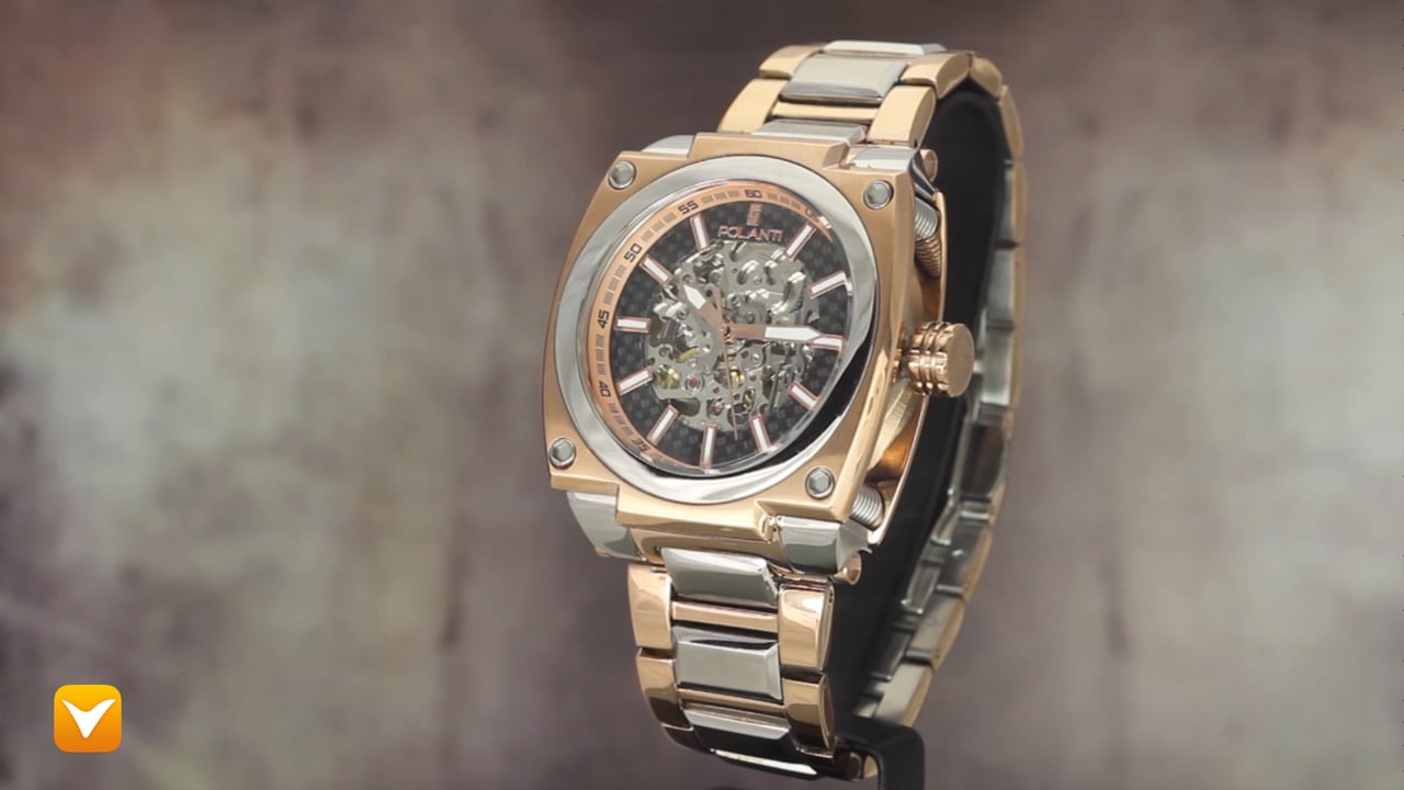 | Polanti Torque G2 Skeleton Automatic Rose Gold Two-Tone Carbon Fiber Dial. Price: $549 | ||