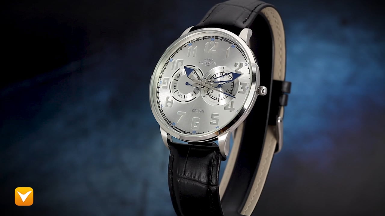 | Oniss Gent's Sweeper Day Date Stainless Steel Silver Dial Black Leather Strap. Price: $109 | ||