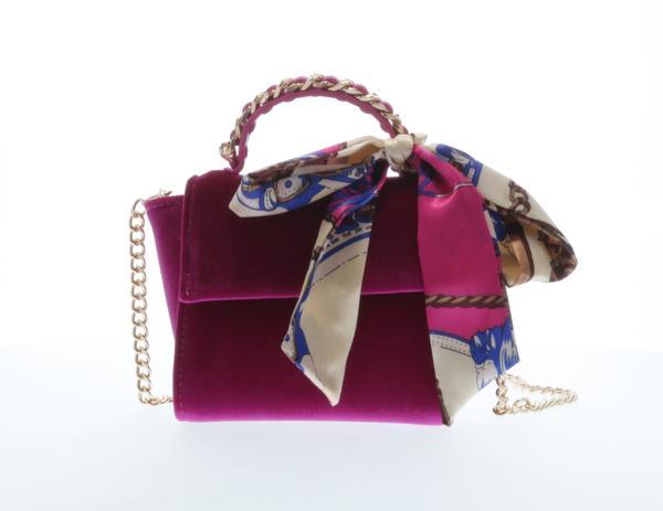 | Description: FW20 gold chain handbag purse scarf velvert top-handle-velvet-handbag-fuchsia Raw 7 Doe A Dear | ||