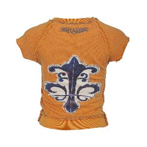 | A true Raw7 Original, this cut off short sleeved v-neck sweatshirt in orange features grey stitching and fleur de lis variation on back. 100% Cotton |