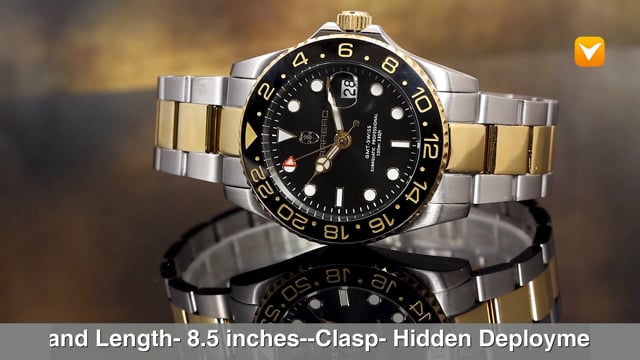 | Carrero 42MM Catamaran Pro Diver Swiss Made GMT Two-Tone Black Dial Black Ceramic Bezel. Price: $369 | ||