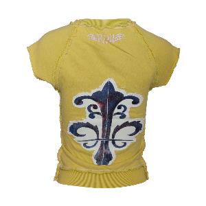 | A true Raw7 Original, this cut off short sleeved v-neck sweatshirt in mustard features string stitching and fleur de lis variation with embroidered RAW7 logo on back. 100% Cotton |