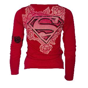 | Get in touch with the super hero within you in this Raw 7 Supergirl long sleeved v-neck. 100% cotton, red with pink Supergirl symbol and roses. 100% Cotton |