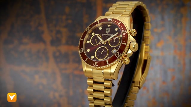 Carrero Limited Edition Catania Diver Swiss Chronograph Gold Tone Maroon Dial Maroon Bezel. Price:
