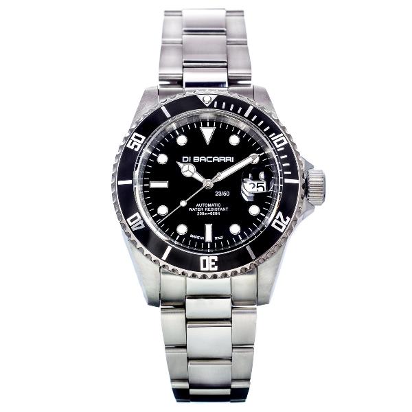 | Description: Di Bacarri Limited Edition Marina Diver Stainless Steel Black Dial Black Bezel | ||