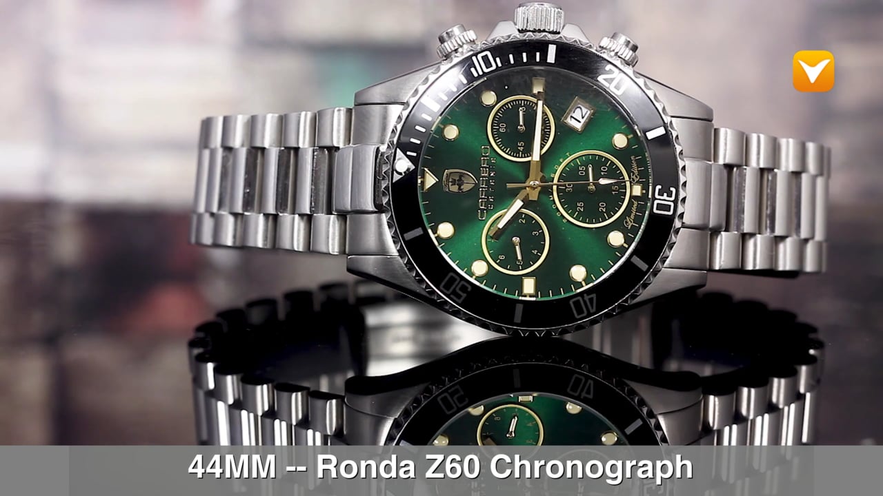 Carrero Limited Edition Catania Diver Swiss Chronograph Stainless Steel Green Dial Black Bezel. Price: