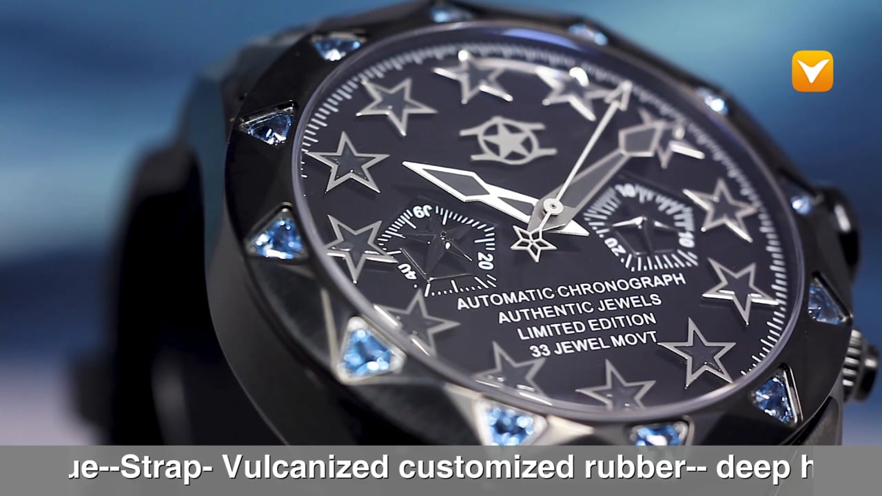 | Watchstar Limited Edition Superstar 33 Jewel Automatic Chronograph Stealth Black Blue Swarovski Crystals. Price: $399 | ||