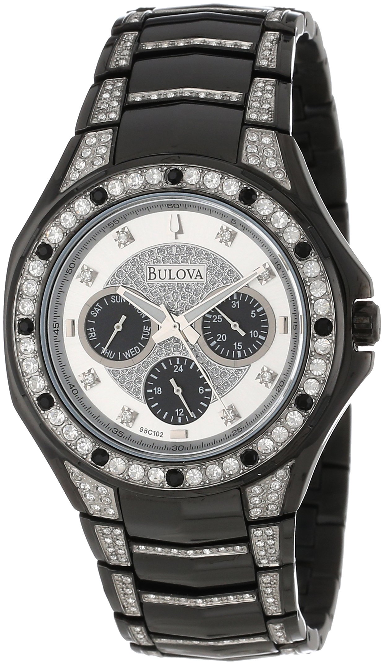 | Bulova Crystals Day Date with 24HR Indicator Black IP Silver Dial. Price: $349 | ||