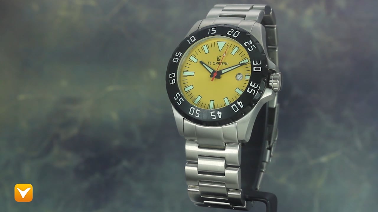 | Le Chateau 21 Jewel Automatic Stainless Steel Yellow Dial Black Bezel. Price: $169 | ||