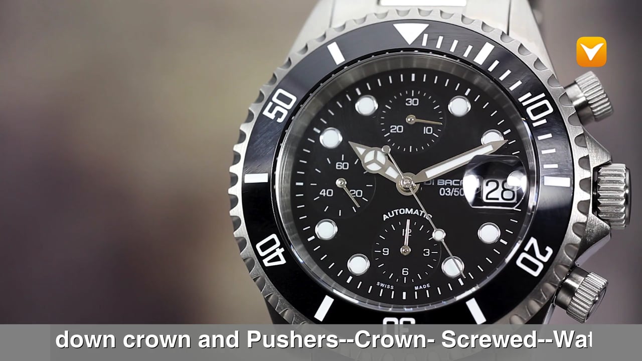 | Di Bacarri Limited Edition Neptune Swiss Made ETA 7750 Automatic Pro Diver Stainless Steel Black Dial Ceramic Bezel. Price: $1395 | ||