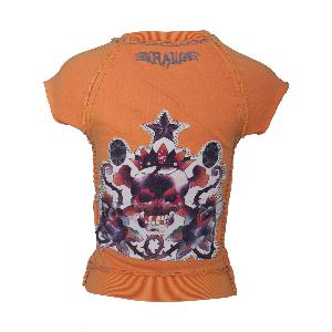 | RAW7 Women's Flame Orange Cut Off V-Neck Sweatshirt Short Sleeved - Skull. Price: $39 | ||