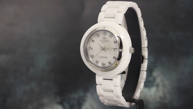 Oniss Ladies Swiss Ceramic Curved Crystal White MOP with Diamonds. Price: