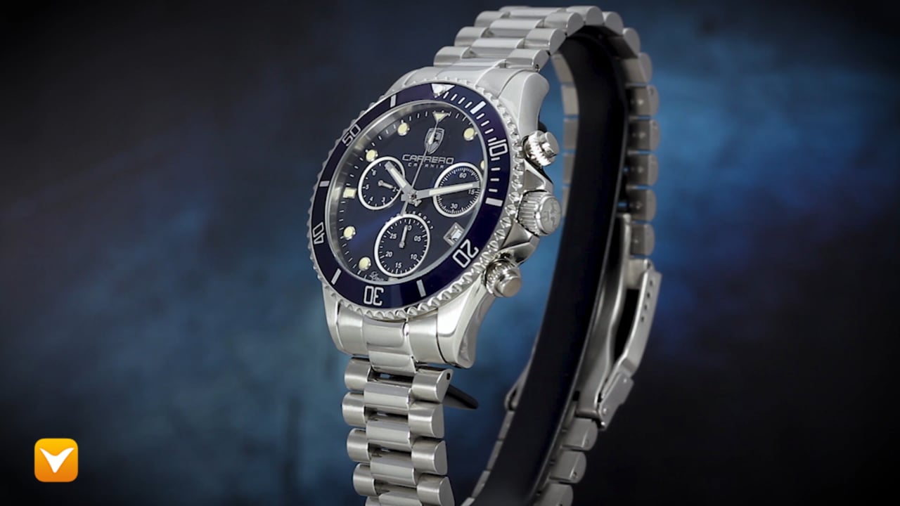 Carrero Limited Edition Catania Diver Swiss Chronograph Stainless Steel Blue Dial Blue Bezel. Price: