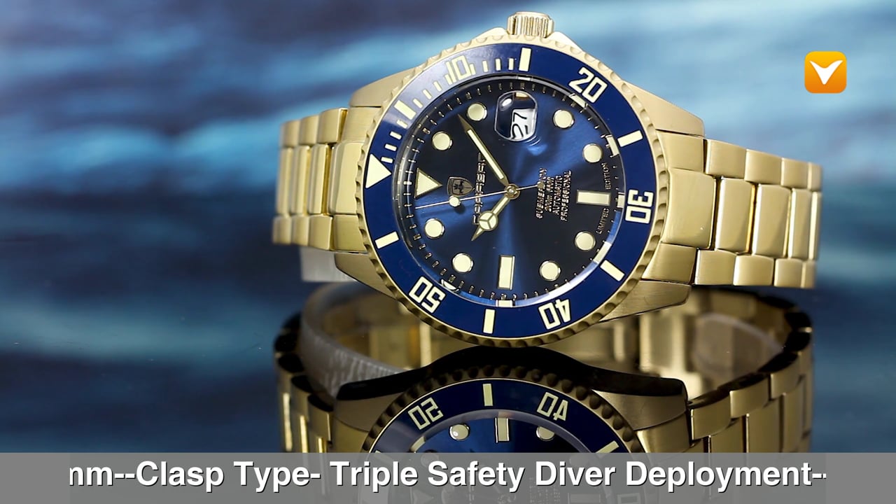 | Carrero Submersion Limited Edition Automatic Gold Tone Blue Dial Blue Ceramic Bezel. Price: $389 | ||