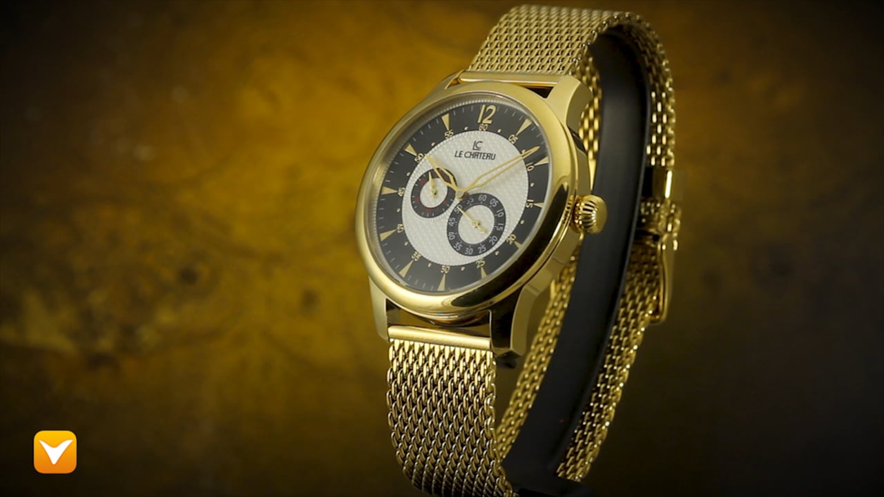 | Le Chateau 21 Jewel Automatic Multifunction Gold Tone Black/White Dial Gold Mesh Band. Price: $199 | ||