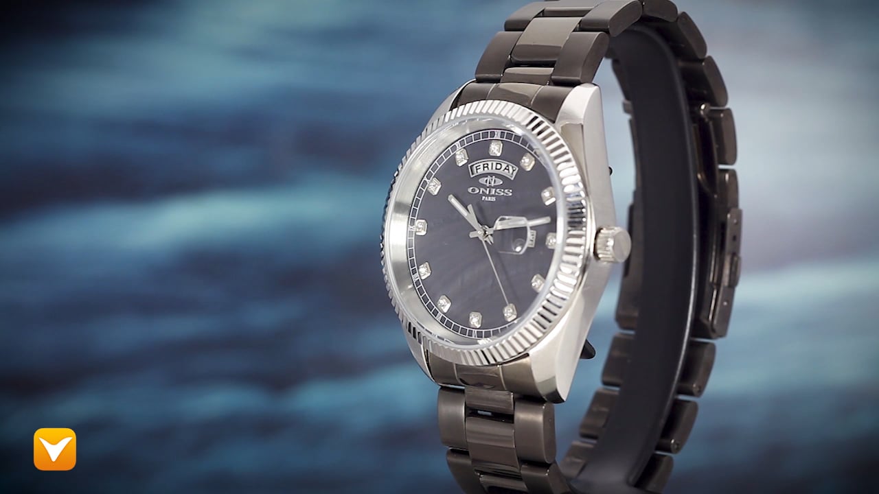 | Oniss RX Day Date Stainless Steel Black Dial Gunmetal Bracelet Austrian Crystals. Price: $149 | ||
