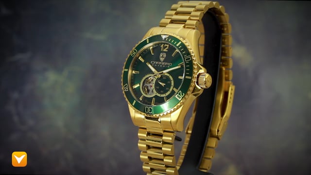 Carrero Limited Edition Catania Diver Automatic Heartbeat Gold Tone Green Dial Green Bezel. Price: