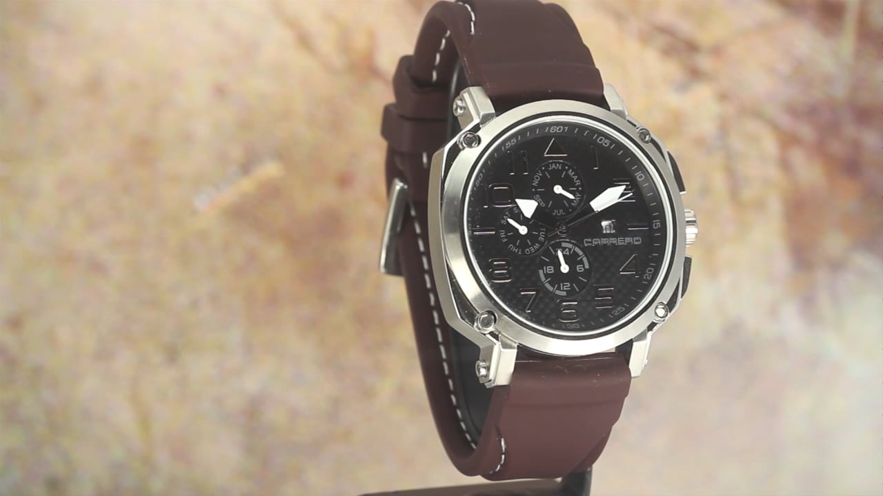 | Carrero Special Edition Swiss Triple Date Black/Gunmetal Dial Brown Rubber Strap. Price: $289 | ||