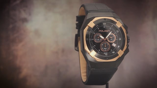 | Polanti Vallant Swiss Chronograph Black/Rose Gold Dial Black Leather Strap. Price: $329 | ||
