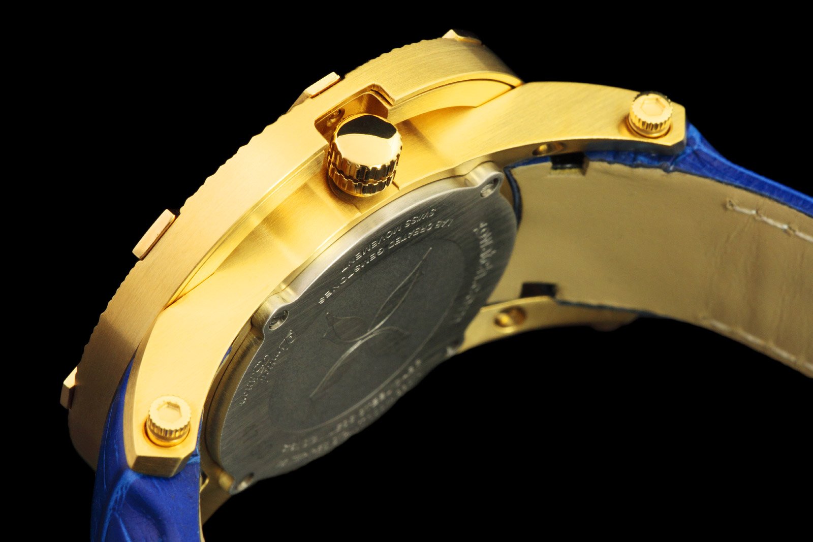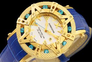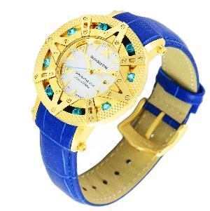 | XOSkeleton Superlative Star Limited Edition Swiss Movement Gold Tone White MOP Dial Blue Leather Strap -50pcs. Price: $369 | ||