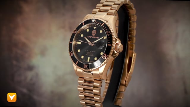| Carrero Limited Edition Catania Diver Rose Gold Black Dial Black Bezel. Price: $369 | ||