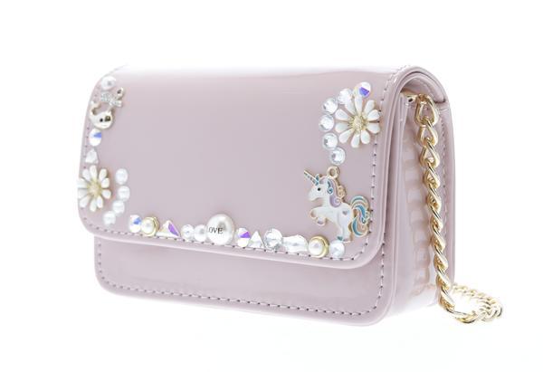 | Description: charms FW20 gold chain handbag patent purse unicorn patent-crossbody-purse-with-charms-pink Raw 7 Doe A Dear | ||
