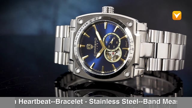 | Watch Details Movement: 21 Jewel Automatic Case Measurements: 45mm Thickness: 15mm Case Material: 316L Stainless Steel Bezel: Fixed Crystal: K1 Mineral Crown: Push Pull Complications: Open Heartbeat Bracelet : Stainless Steel Band Measurment: 9.12 inches Length X 27mm Width Clasp: Dual Deployment Water Resistance: 10 ATM - 100 meters - 330 feet |
