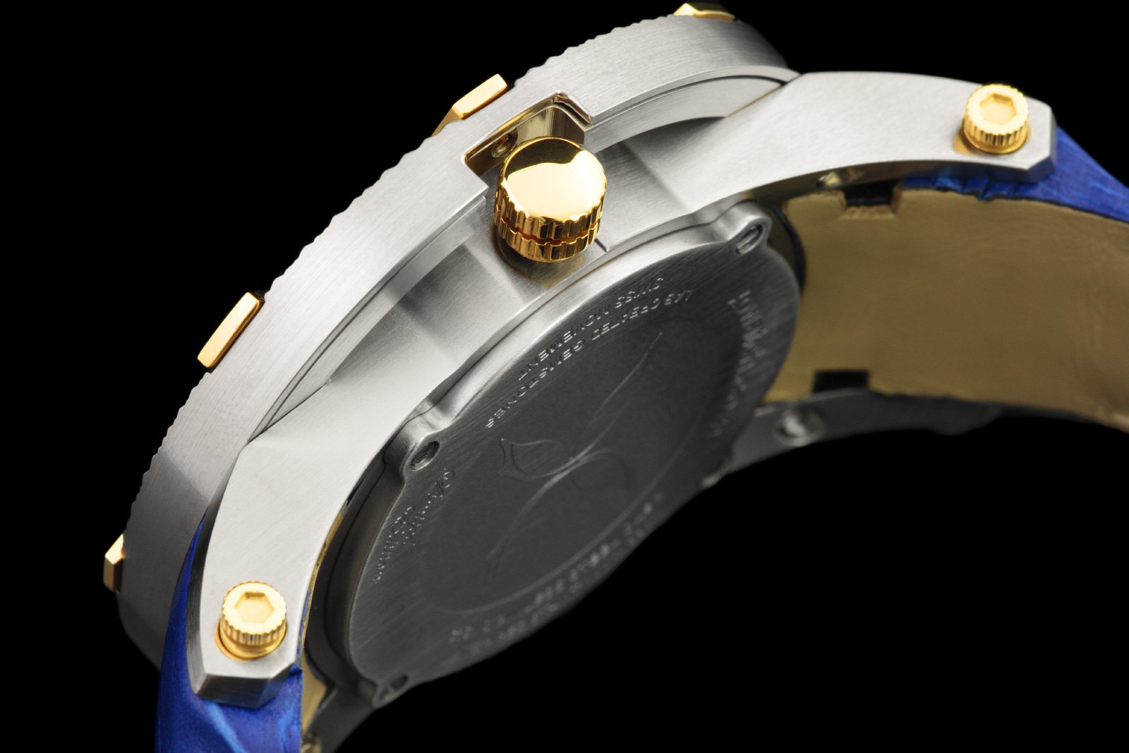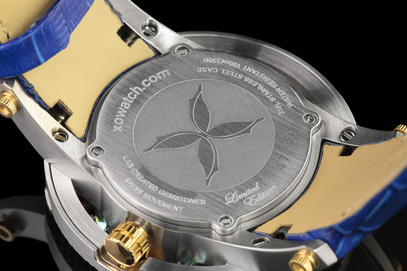 | Brand: XOSkeleton -- Blue Mother-of-Pearl Dial -- Swiss Made Quartz Movement -- 18kt Yellow Gold Plating -- Limited Edition of only 50 pieces |