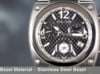 | Case Material : Stainless Steel Case Band Material : Stainless Steel Movement : Swiss Made Quartz Chronograph Movement Case Diameter : 47mm x 54mm Band Length : 8 inches Calendar : Date Calendar Case Thickness : 15 mm Band Width : 22 mm Water Resistance Depth : 50 Meters Bezel Material : Stainless Steel Bezel |
