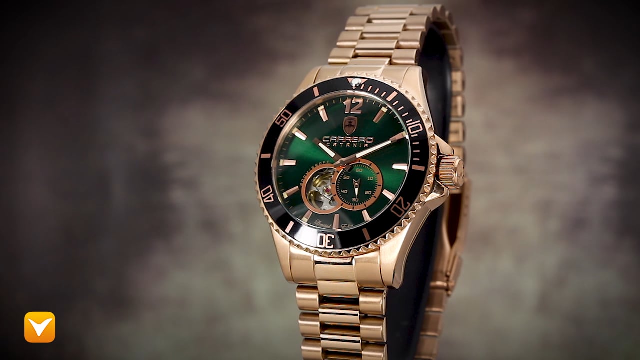| Deal Carrero Limited Edition Catania Diver Automatic Heartbeat Rose Gold Green Dial Black Bezel. Price: $399 | ||