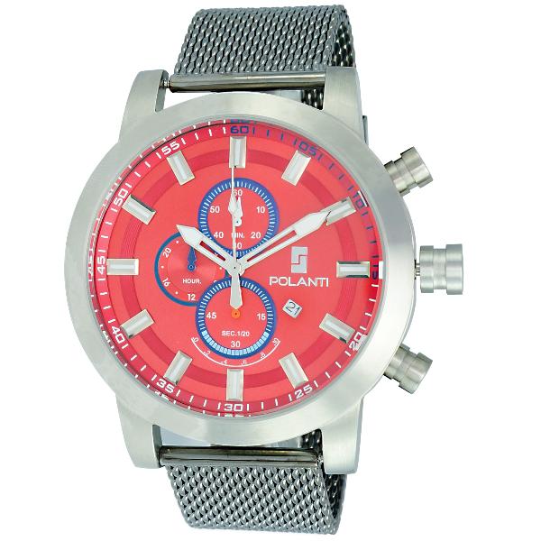 | Polanti Retrograde Chronograph Red Dial Mesh Band. Price: $289 | ||