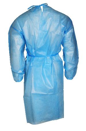 | Full back, Side Tie, Neck Tie, Elastic Cuff, Latex Free, Level 3 Performance. Medium weight polyproplylene and plyethylene full-back design for PPE compliance with full body coverage. Spray impact = 0.0g , Hydropstatic Pressure rage between 114cm and 141cm. Length: 120cm, Chest: 155cm, Sleeves: 675cm. Material: 40gsm PP + PE(25 PP and 15PE) |