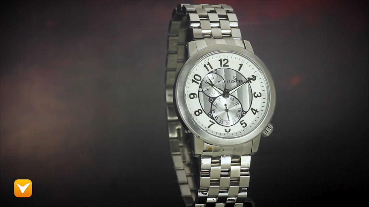 | Brand: Le Chateau Gender: Men's Dial Color: Silver Watch Movement: Seconds Counter with GMT Indicator Band Material: Stainless Steel Band Width: 22mm Clasp Type: Clasp Manufacturer's Movement Caliber: Citizen Miyota Watch Case: 316L Stainless Steel with Glassback Water resistant: 50m-165ft Crystal: Harden Mineral Bezel: Stationary Case Diameter: 43mm Case Thickness: 11mm |
