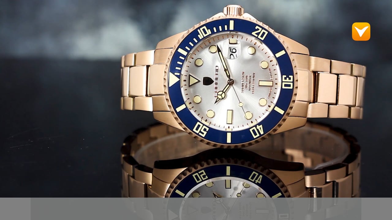 | Carrero Submersion Limited Edition Automatic Rose Gold Silver Dial Blue Ceramic Bezel. Price: $389 | ||