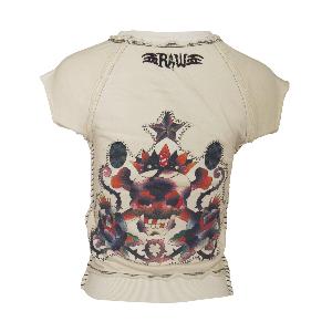 | RAW7 Women's Ivory Cut Off V-Neck Sweatshirt Short Sleeved - Skull. Price: $39 | ||